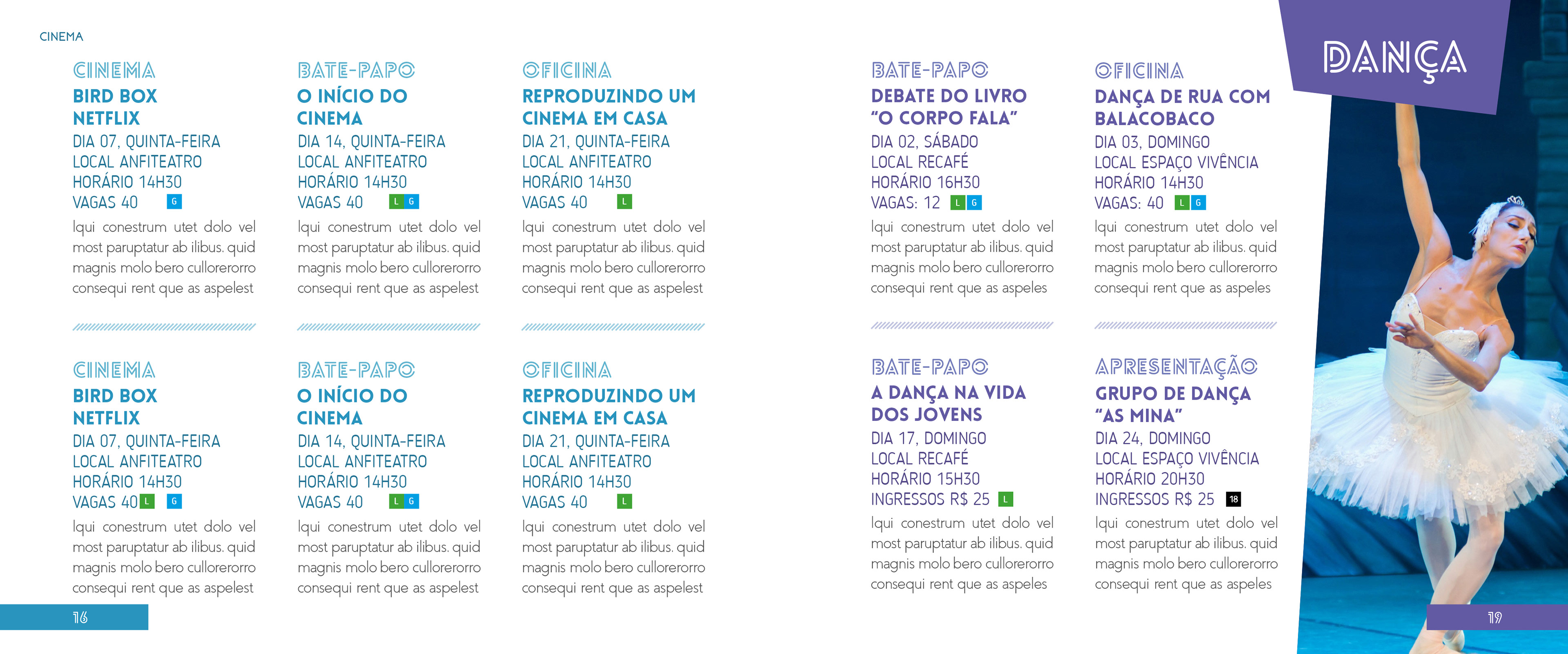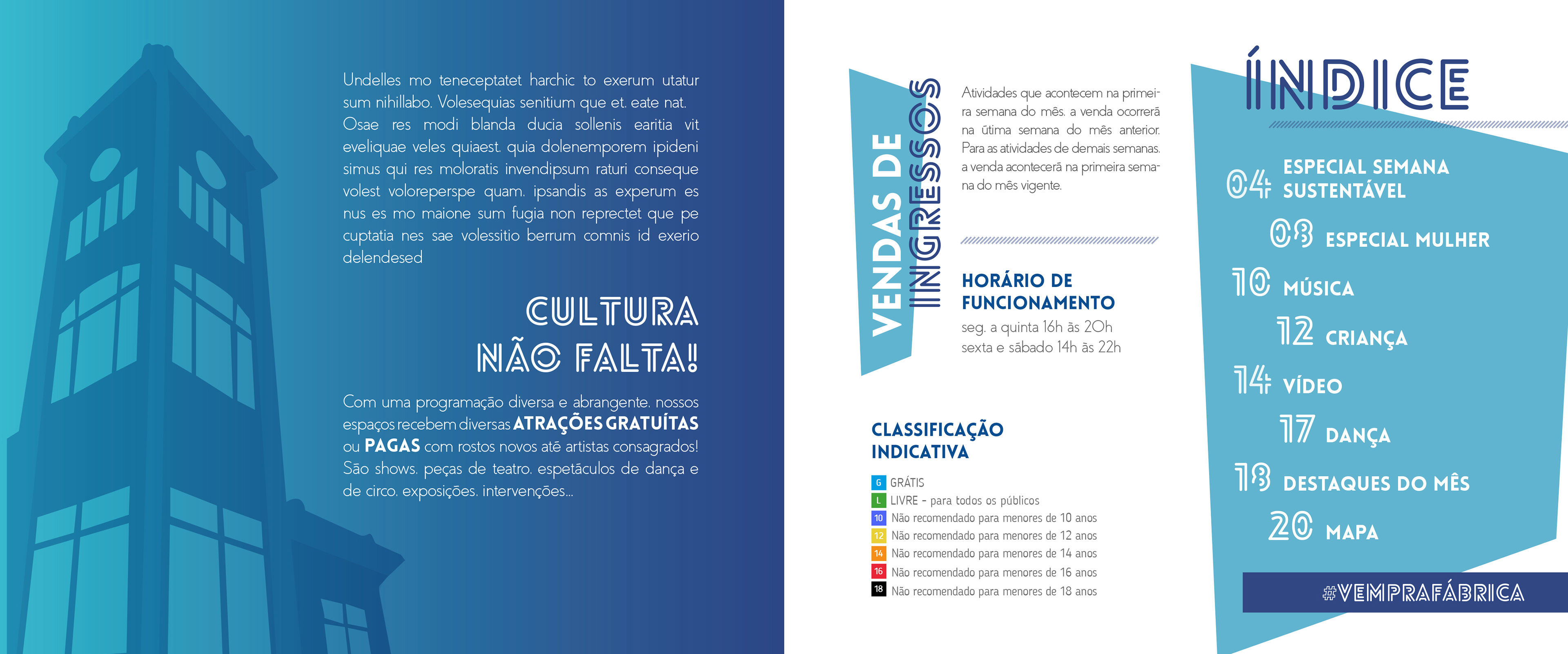 To advertise the monthly attractions, it was designed a booklet with information for public disclosure, and a newspaper that shows activities that have happened and are still to come, along with guests interviews, among others.